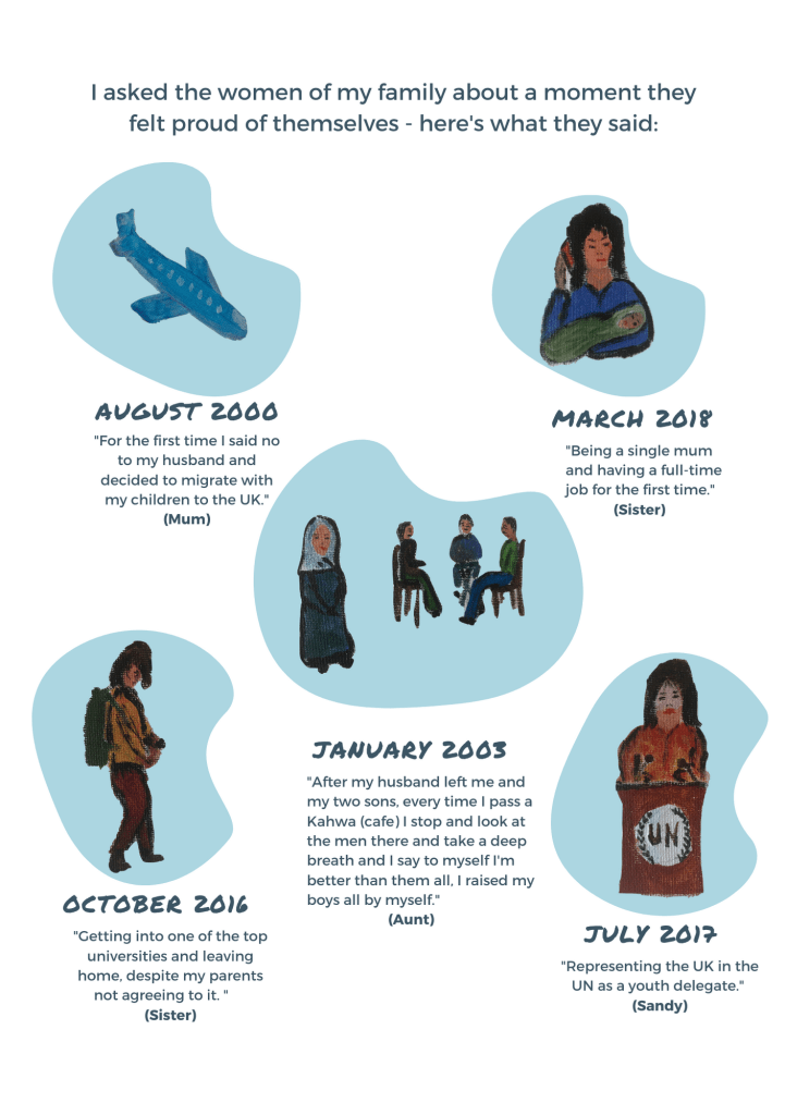 The conversations –fourteen over six weeks – undertaken by video call have allowed me to challenge the many presumptions people have about Arab Women which, unfortunately, they mostly receive through the media which characterises us as weak, oppressed and controlled. This is not to say that some of these characterisations are not true, some of us of course struggle with these.